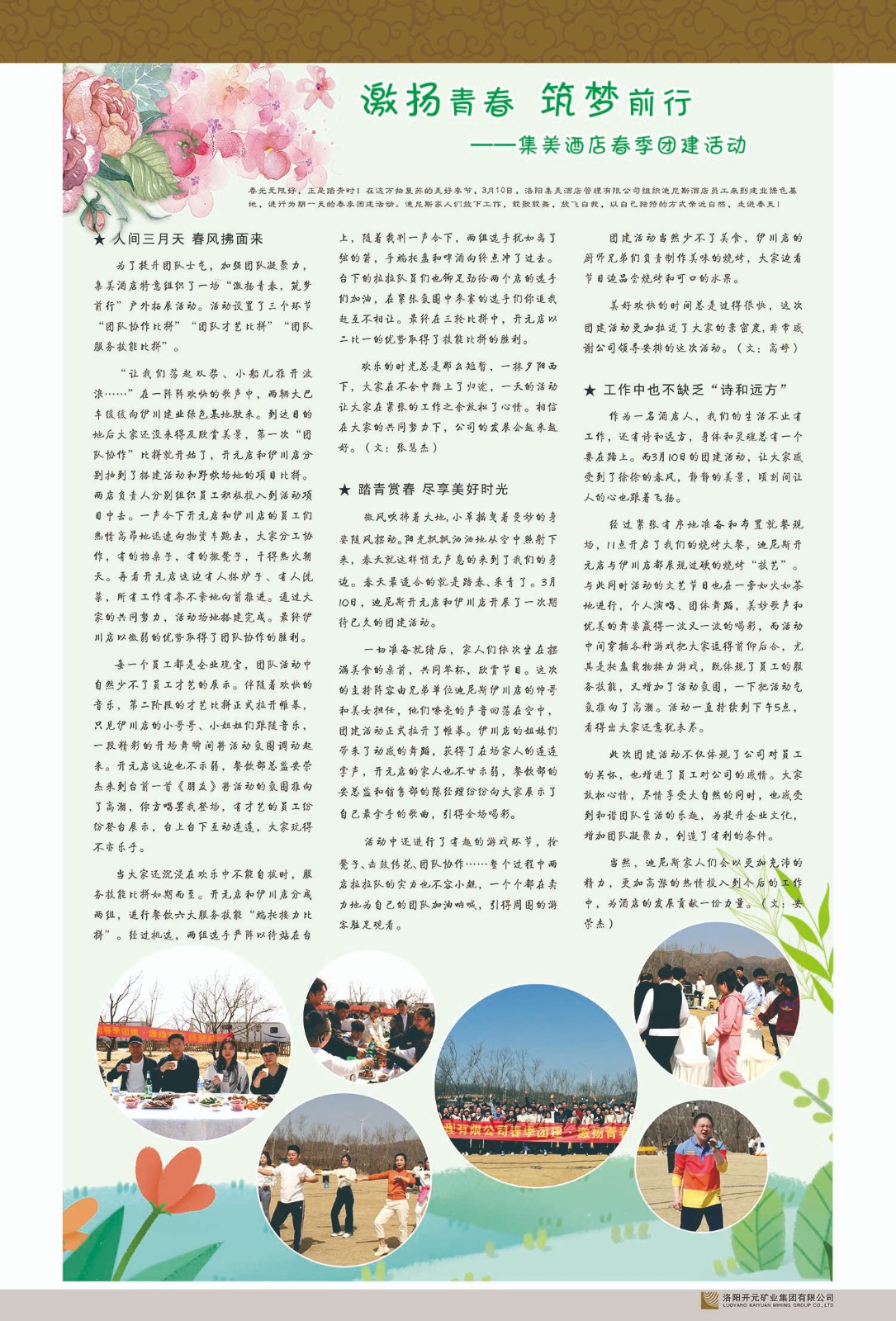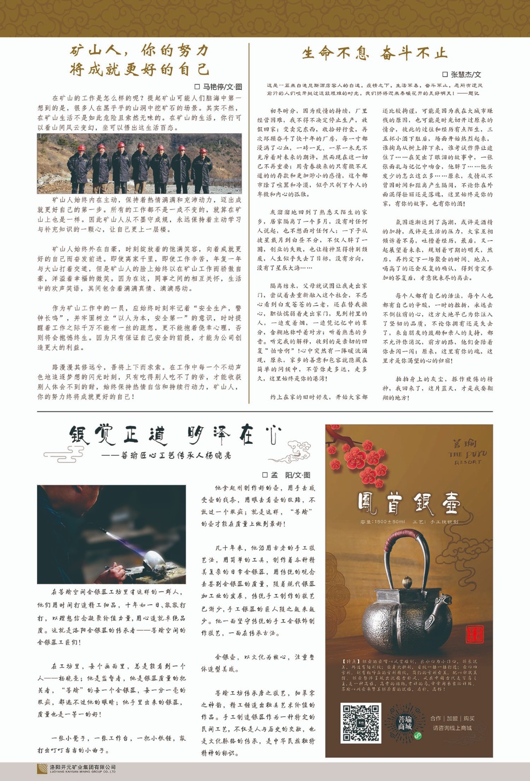 洛陽(yáng)開(kāi)元礦業(yè)集團(tuán)有限公司簡(jiǎn)介洛陽(yáng)開(kāi)元礦業(yè)集團(tuán)有限公司,始成立于2006年,位于洛陽(yáng)市開(kāi)元大道269號(hào)。集團(tuán)旗下共有五余家全資子公司,業(yè)務(wù)涉及有色金屬礦山開(kāi)發(fā)、礦產(chǎn)品購(gòu)銷(xiāo)與進(jìn)出口貿(mào)易、房地產(chǎn)開(kāi)發(fā)、文化藝術(shù)、企業(yè)管理與咨詢(xún)、資本投資等多個(gè)領(lǐng)域。民建河南省委委員、民建河南省委企業(yè)委副主任、民建洛陽(yáng)市委委員、企業(yè)委主任、洛陽(yáng)民建企業(yè)家協(xié)會(huì)會(huì)長(zhǎng)許明月是公司創(chuàng)始人,現(xiàn)任洛陽(yáng)開(kāi)元礦業(yè)集團(tuán)有限公司董事長(zhǎng)。在礦業(yè)領(lǐng)域,洛陽(yáng)開(kāi)元礦業(yè)集團(tuán)擁有多家實(shí)力雄厚的子公司:貴州開(kāi)元礦業(yè)有限公司探、采礦權(quán)面積共11.33平方公里;興海縣銅鑫礦業(yè)有限公司探礦權(quán)面積8.76平方公里,礦山資源潛力巨大;2021年,開(kāi)元集團(tuán)與盧氏中科礦業(yè)有限公司開(kāi)展戰(zhàn)略合作。盧氏中科礦業(yè)有限公司專(zhuān)注于有色金屬的浮選、加工和銷(xiāo)售,擁有強(qiáng)大的技術(shù)支撐平臺(tái),是集探、采、選、冶、研為一體的中大型綜合礦業(yè)企業(yè)。目前,盧氏中科王家河1000噸選礦廠(chǎng)已成功投產(chǎn),雙河金礦、柳關(guān)欒盧鉛鋅礦相繼順利開(kāi)工,樓房銀礦與圪老灣鉛鋅礦的深部探礦重大突破,標(biāo)志著礦山版圖取得重大進(jìn)展,為開(kāi)元集團(tuán)后續(xù)發(fā)展奠定了堅(jiān)實(shí)基礎(chǔ)。在文化傳媒領(lǐng)域,洛陽(yáng)市明月美術(shù)館通過(guò)豐富多樣的藝術(shù)展覽、學(xué)術(shù)研討和公共教育活動(dòng),努力打造一個(gè)集展覽、交流、教育、研究為一體的綜合性藝術(shù)平臺(tái)。此外,在金融投資領(lǐng)域,開(kāi)元集團(tuán)旗下的北京明峰資本管理有限公司專(zhuān)注于投資具有高增長(zhǎng)潛力的優(yōu)秀企業(yè),特別是高科技、新能源、環(huán)保等新興產(chǎn)業(yè),為客戶(hù)提供個(gè)性化的資產(chǎn)配置服務(wù)。在做好企業(yè)經(jīng)營(yíng)的同時(shí),開(kāi)元集團(tuán)始終不忘企業(yè)的社會(huì)責(zé)任和家國(guó)情懷,以突出的愛(ài)心公益事跡,開(kāi)展了一系列公益慈善活動(dòng):“民建林”公益事業(yè)通過(guò)“思源基金”“幫幫公益”線(xiàn)上公益平臺(tái),與眾多愛(ài)心人士籌措資金20余萬(wàn)元;資助541名貧困大學(xué)生共計(jì)270余萬(wàn)元,推進(jìn)“數(shù)字助力——河南AI人才培養(yǎng)”;捐款10萬(wàn)元,馳援京津冀、黑龍江洪水地質(zhì)災(zāi)害……公司于2017年底被洛陽(yáng)市慈善總會(huì)評(píng)為“洛陽(yáng)慈善風(fēng)云榜——十大愛(ài)心集體”。洛陽(yáng)開(kāi)元礦業(yè)集團(tuán)有限公司秉承持續(xù)發(fā)展理念,憑借多年來(lái)良好的企業(yè)信譽(yù)與經(jīng)營(yíng)業(yè)績(jī),與全國(guó)多家企業(yè)建立了良好合作關(guān)系,受到社會(huì)各界的一致好評(píng),多次榮獲“納稅標(biāo)兵”“先進(jìn)企業(yè)”“招商引資模范企業(yè)”等榮譽(yù)稱(chēng)號(hào)?;赝麃?lái)時(shí)路,開(kāi)元人勠力同心,以“闖”的精神和“創(chuàng)”的勁頭,一路披荊斬棘,踏過(guò)千山萬(wàn)水;展望新未來(lái),開(kāi)元人凝心聚力,不執(zhí)于“舊”,無(wú)畏于“新”,秉承“勇于跨越,追求卓越”的企業(yè)精神,乘著國(guó)家高質(zhì)量發(fā)展新征程的東風(fēng),跨過(guò)高山,越過(guò)大海,向著集團(tuán)多元化、國(guó)際化的目標(biāo),逐夢(mèng)遠(yuǎn)航,跨越前行!